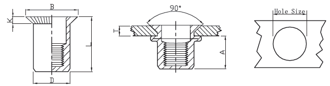 Maison / Produits / Noix de rivet aveugle / Tête-à-tête rond du corps rivet noix / Tête-à-coint rond corps noix de rivet plaine / Acier Coussunk Head Round Body Rivet Nuts Fermed Type d'extrémité